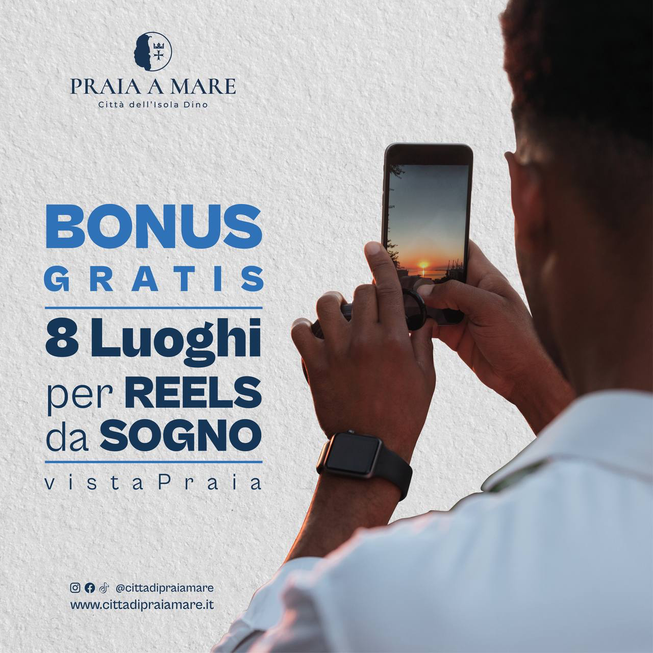 Smart: Fai attenzione alle parole sottolineate, sono dei link! Cliccali per scoprire tutto sulla storia dei luoghi più belli e caratteristici di Praia o per collegarti direttamente ai canali social dei locali e delle attività consigliate.